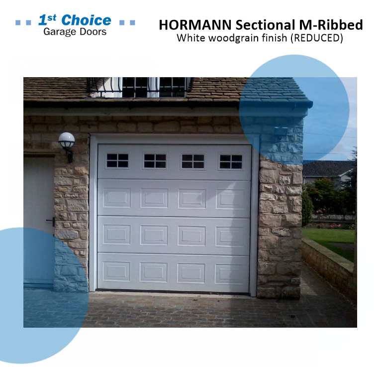 The HORMANN Sectional M-Ribbed in a white woodgrain finish, is a stunning garage door, perfect for any home or business.